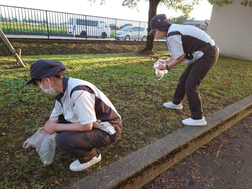従業員が集まり、小矢部工場周辺のゴミ拾いや除草作業を行いました。暑さも和らぎ気持ちよく清掃活動ができました。