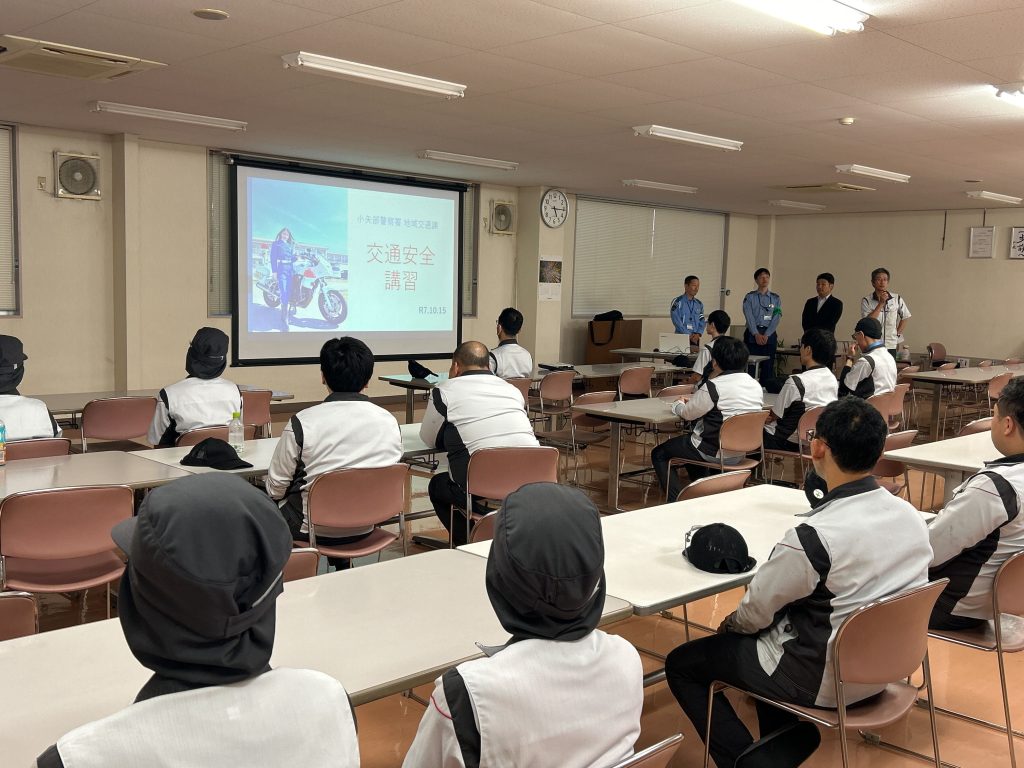 10月15日、黒田化学では地元の小矢部警察署より職員の方をお招きし、従業員を対象とした交通安全講習を実施しました。