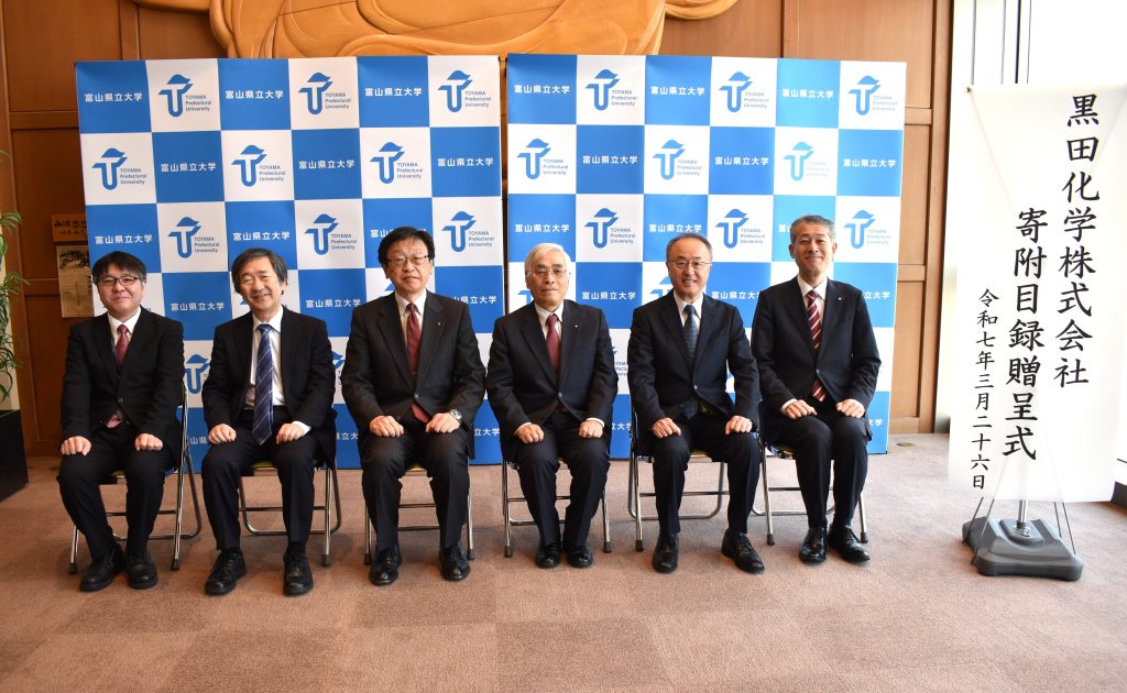 2025年3月26日(水)に同大学射水キャンパスにて寄附目録の贈呈式が執り行われ、当社代表より大学関係者へ目録を手渡しました。