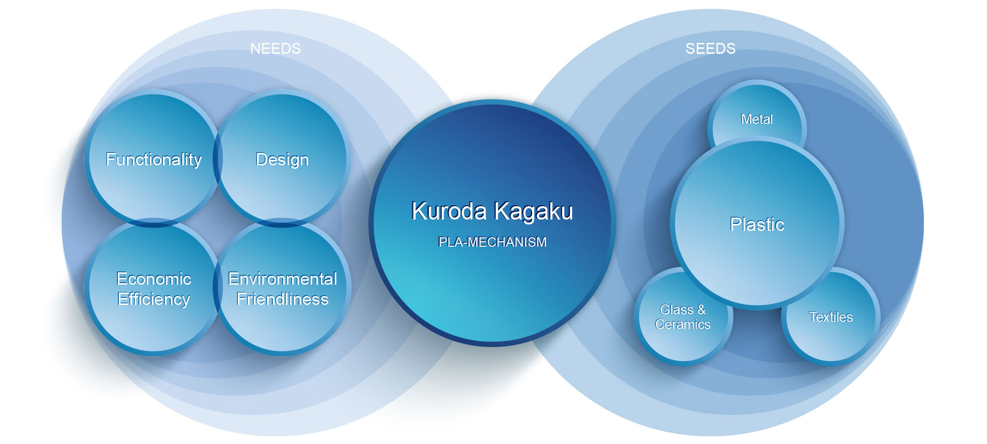 “Pla-Mechanism” refers to the creation of new mechanisms, by combining worldwide needs with diverse “seeds,” focused around plastics. We create new value, leveraging the know-how, technology, and network that we have established over many years.